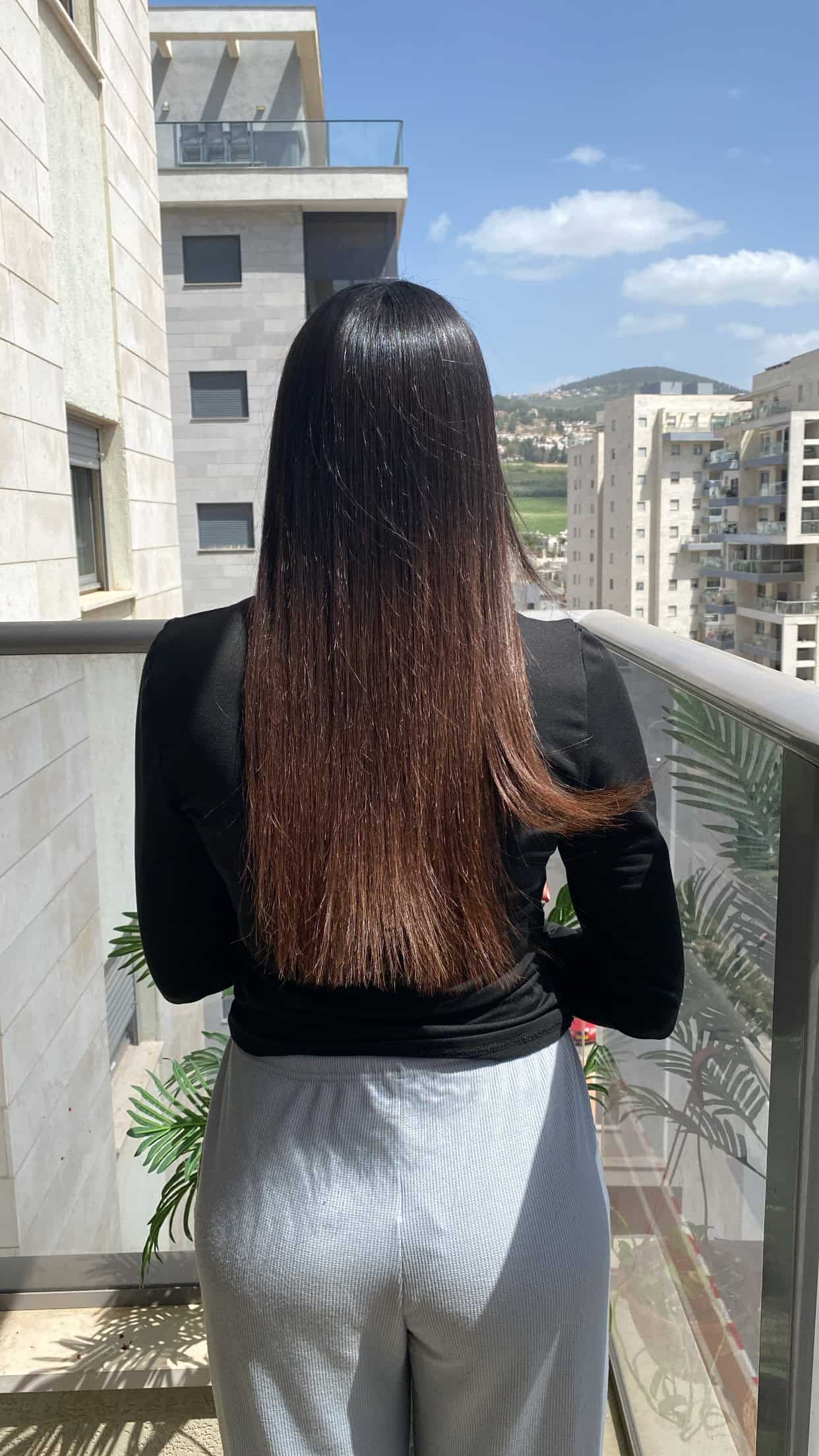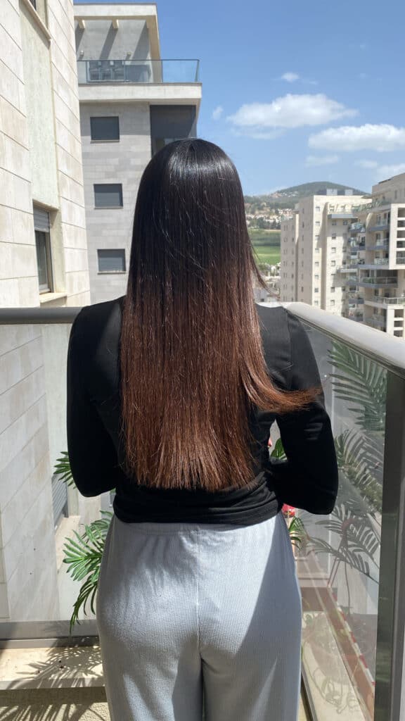 רחל מלווה כל לקוחה גם לאחר ההחלקה, כדי לוודא שהשיער נשאר בריא, יפה ומטופח גם בבית.